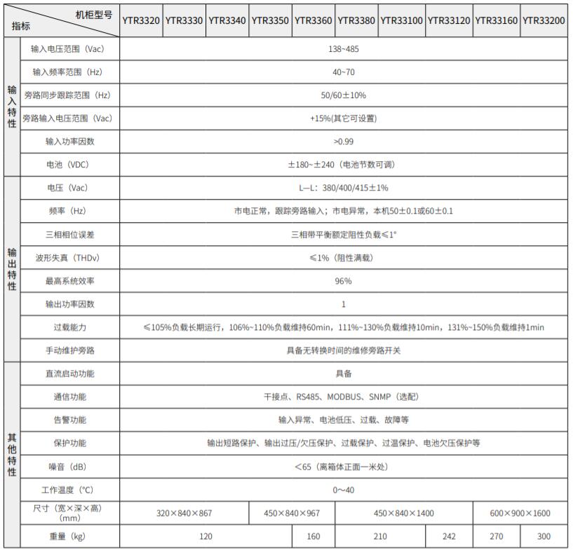 YTR33系列三进三出 UPS(20-200)kVA